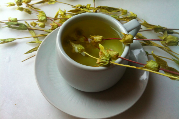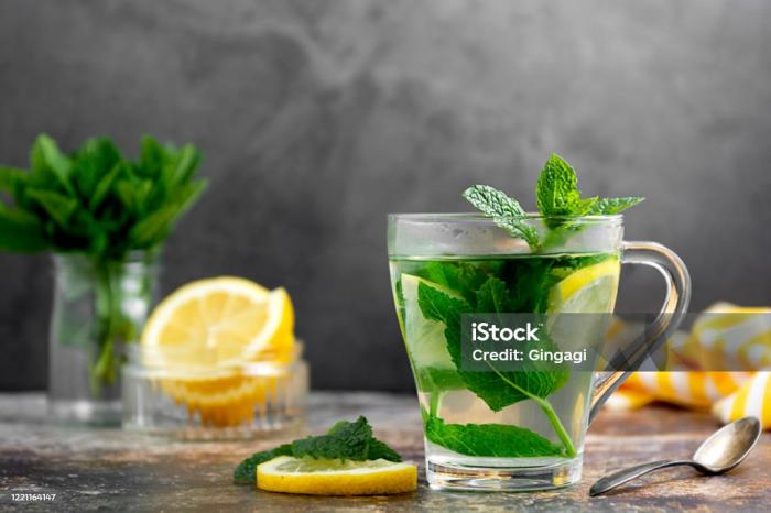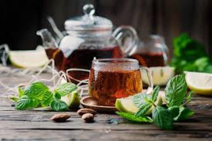 yeşil bitki çayı , limon dilimleri ve bal ile..