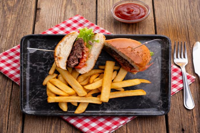 3 adet ev yapımı köfte, patates cips ve siyez eriştesi ile …
